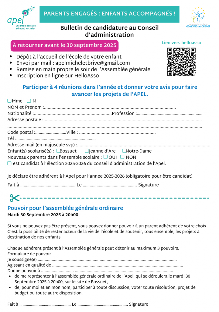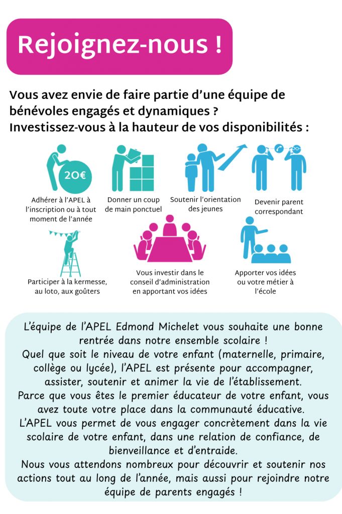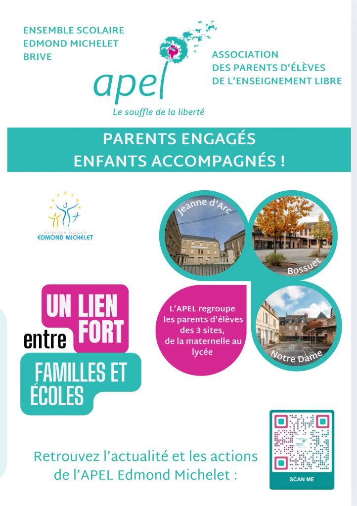 C’est l’occasion de rejoindre l’APEL Edmond Michelet Brive pour vous impliquer dans la vie de votre enfant à l’école.